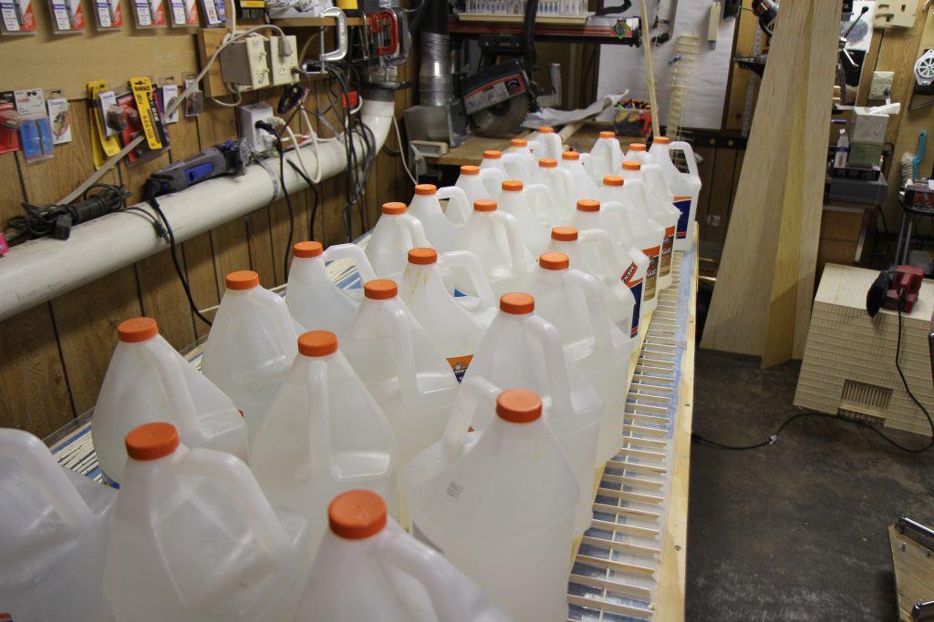 Another technique Acton developed is sheet-building. After thousands of matchsticks are glued together on a base of Plexiglas, the glue is allowed to dry for a few days. Then this matchstick board can be peeled away from the sheet of acrylic. These large flat sheets of matchsticks, similar to thin pieces of plywood or wood veneer, are used for various model interior framing and substructures.