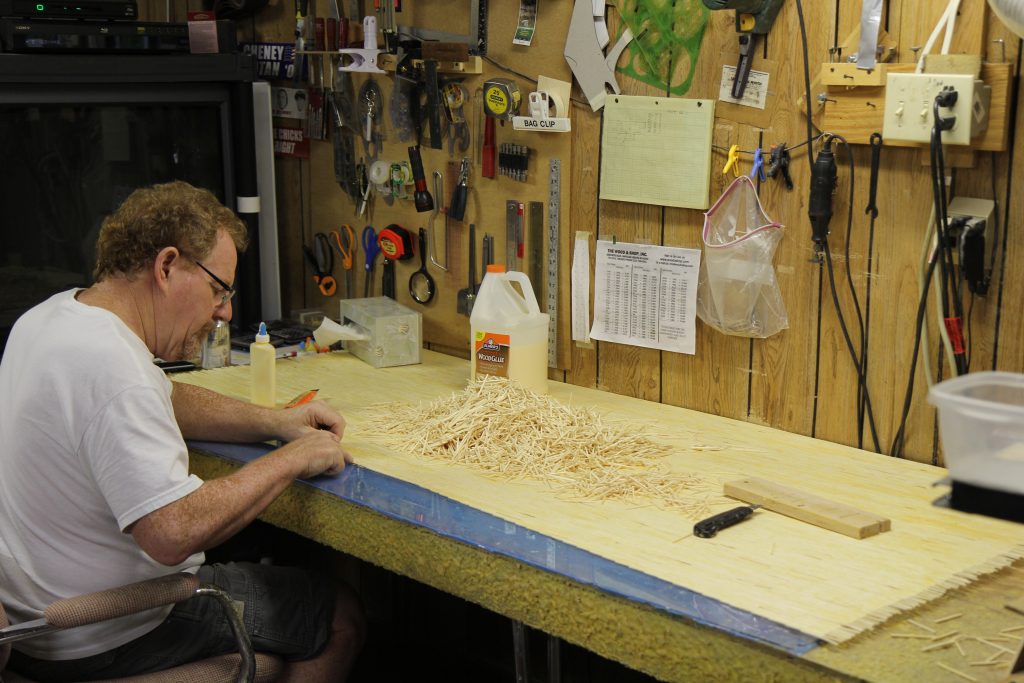 Although his techniques for building models have improved, the basic process has remained the same; that is, gluing one stick at a time.