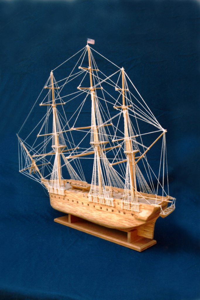 Then in 1977, fresh out of college with no woodworking tools of his own, Acton built a small model of a country church. He used Ohio Blue Tip matches purchased at the grocery store, a bottle of school glue, a utility knife, and a piece of sandpaper. Soon after that he challenged himself by building a matchstick model of a ship, the frigate USS Constitution. His wintertime hobby became a passion.