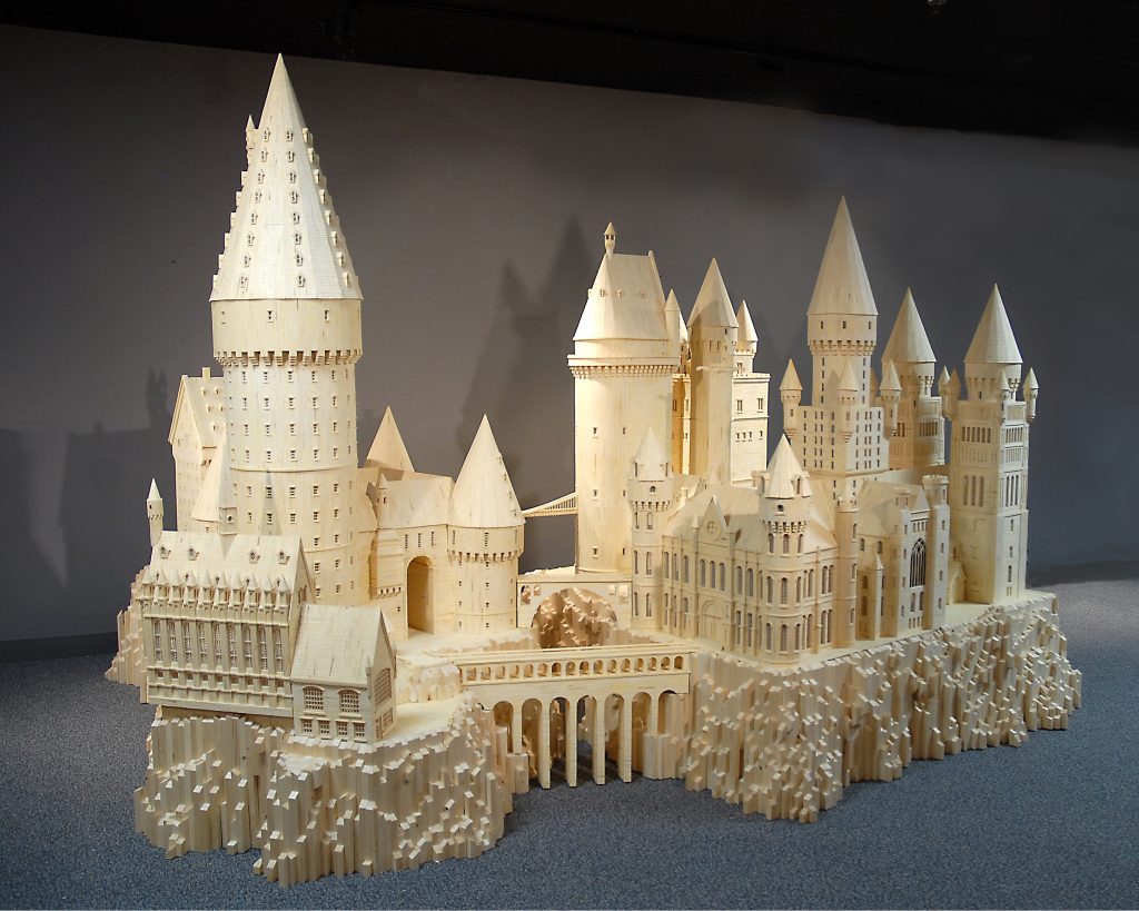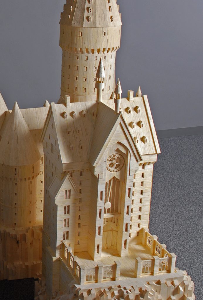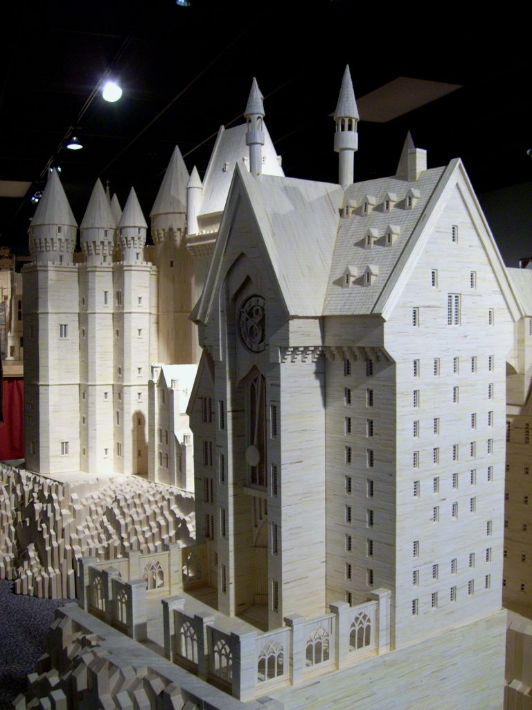 Fun Fact: Patrick had a difficult time finishing Hogwarts during the three years that it took to build the matchstick model because Hollywood released a new movie during that period that had changed the architecture of some of the buildings, and added addional buildings to the to the school grounds. Not all these changes are reflected in Patrick’s model, but all buildings are represented in the model excluding one, the Hogwarts’ owlry.