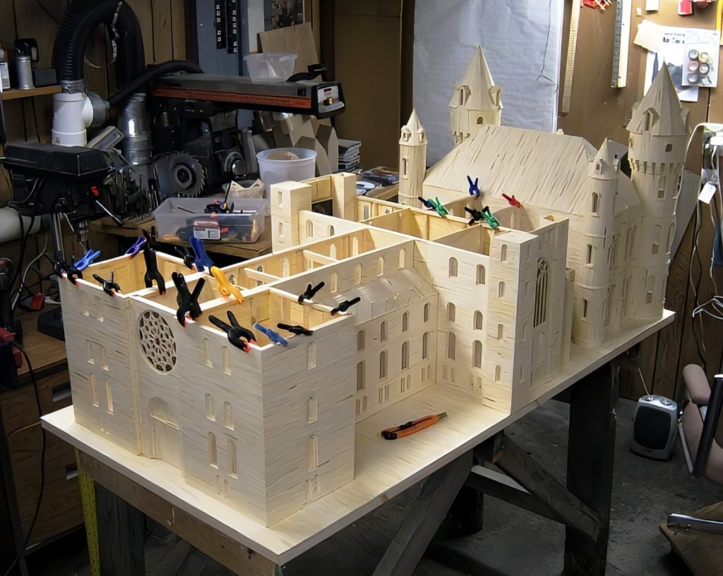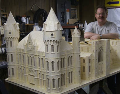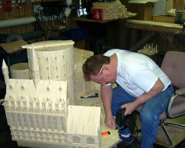 Initial planning for the matchstick model began in March 2004 when Acton completed many technical drawings and built a small cardboard scale model of the castle to use as a guide during construction. All of Acton’s initial drawings were based on Michael Bramman’s incredible painting An Owl’s Eye View of Hogwarts. Acton had completed nearly all of the technical drawings used to build the matchstick model by the time actual construction of Hogwarts began in the fall of 2004. He did use other photographs later to assure he captured the finer details of the castle complex. Also, the release of additional movies showed an ever-changing and more complex Hogwarts as Hollywood artists added and enhanced the scope of Hogwarts buildings and grounds.