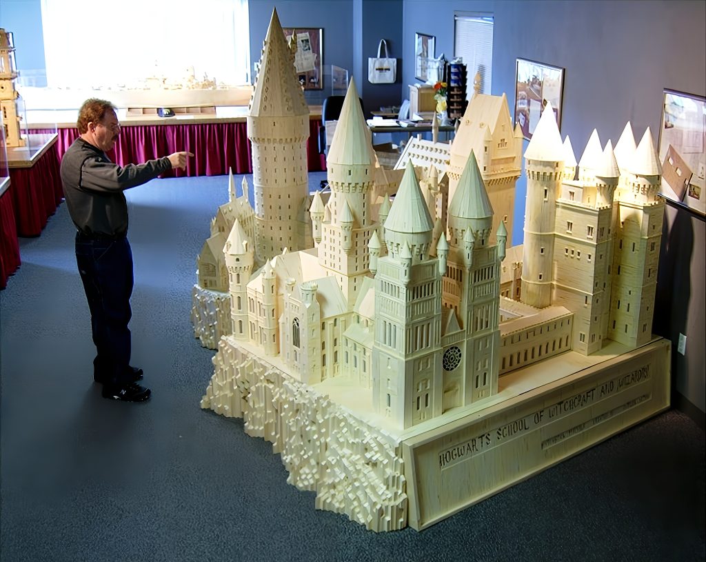 Matchstick Marvels took an enchanted trip to the world of Harry Potter when Hogwarts School of Witchcraft and Wizardry was brought to life with matchstick magic. Based on J. K. Rowling’s Harry Potter novel series, Acton’s version of the Hogwarts castle was completed in November 2006 after nearly three years of construction that took 24 gallons of wood glue, and 602,000 matchsticks. It was the largest matchstick model Acton had constructed at the time.