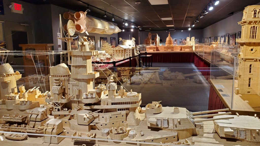 Come and see the best matchstick models in the world! Acton has created dozens of wooden models and sculptures made exclusively of ordinary wooden matchsticks. He has used millions of matchsticks and hundreds of gallons of glue to create models that are highly detailed and painstakingly scaled. Also at the Center, you will see drawings and plans for many of the models, plus tools and equipment used in construction, and a video documentary of Acton’s unusual hobby.